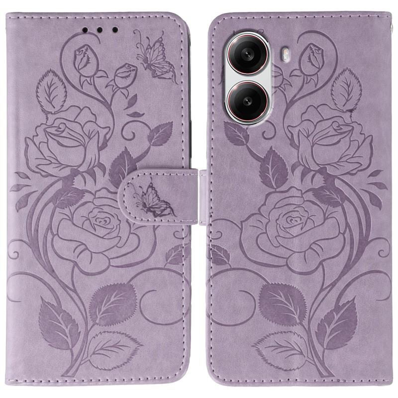 For Xiaomi Poco X7 Pro Rose Butterfly Embossed Leather Phone Case(Purple)