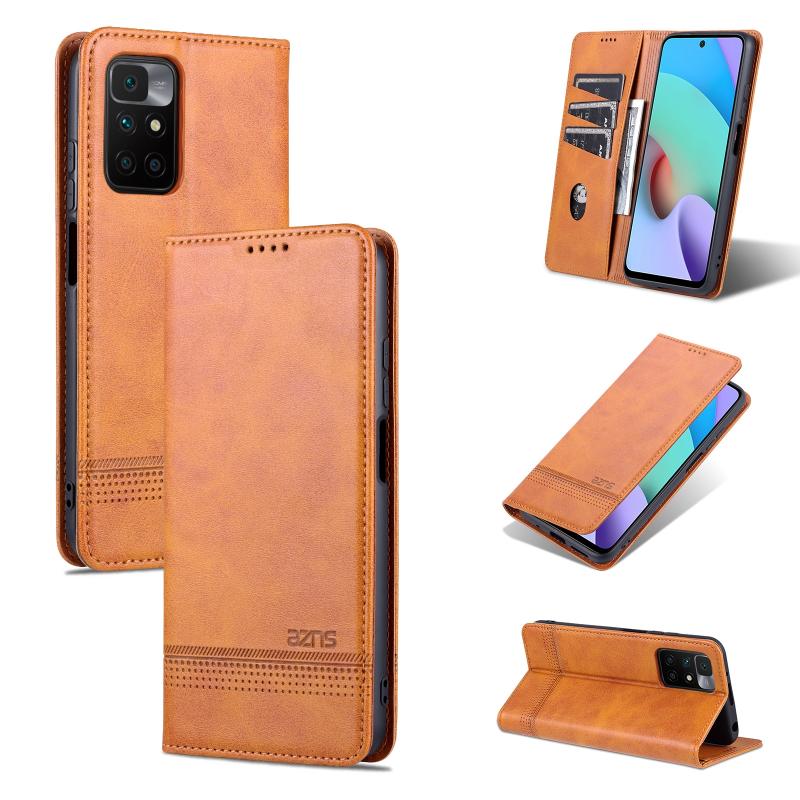 For Xiaomi Redmi 10 AZNS Magnetic Calf Texture Horizontal Flip Leather Case with Card Slots & Holder & Wallet(Light Brown) (AZNS)