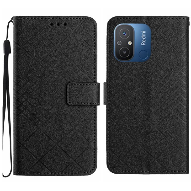 For Xiaomi Redmi 11A / Poco C55 Rhombic Grid Texture Leather Phone Case(Black)