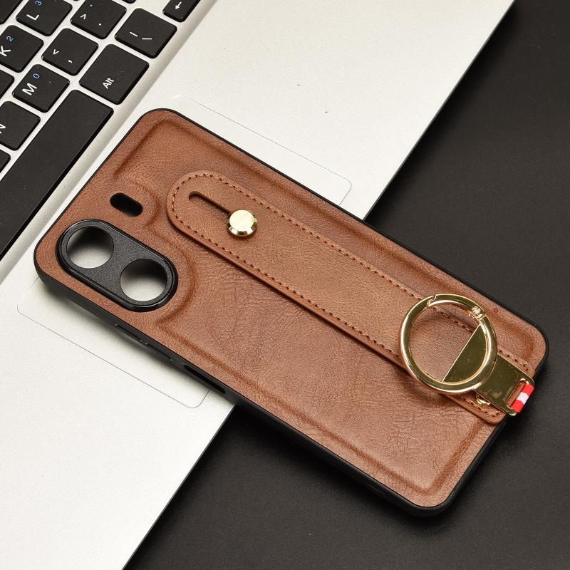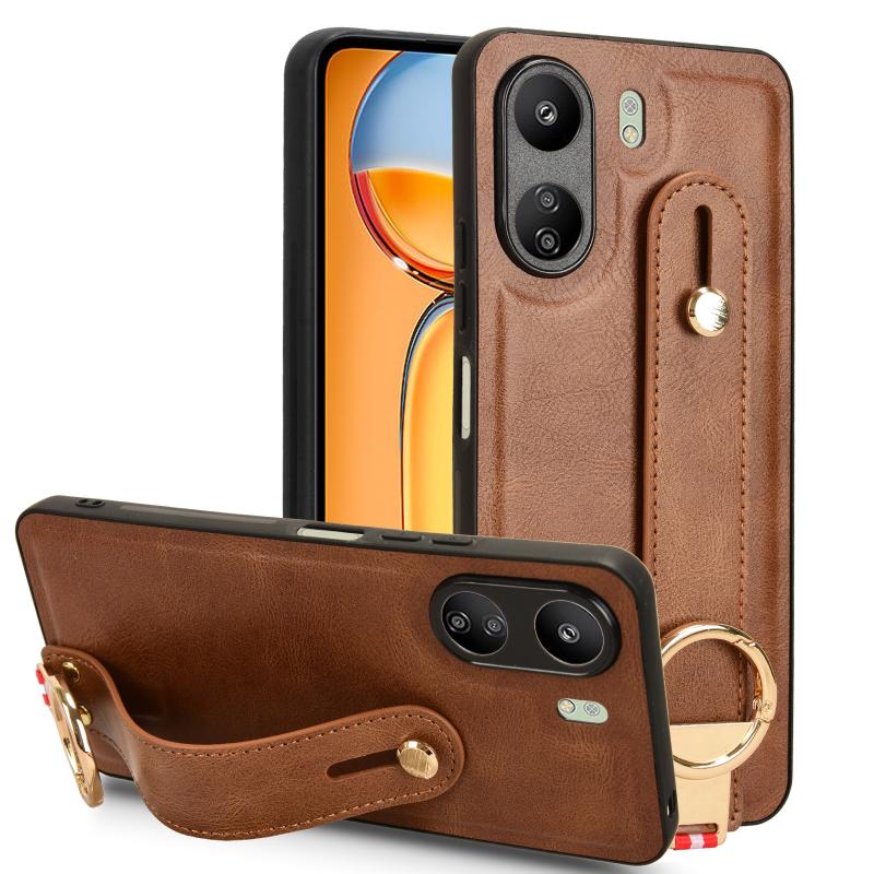 For Xiaomi Redmi 13C 4G/Poco C65 Wristband Leather Back Phone Case(Brown)