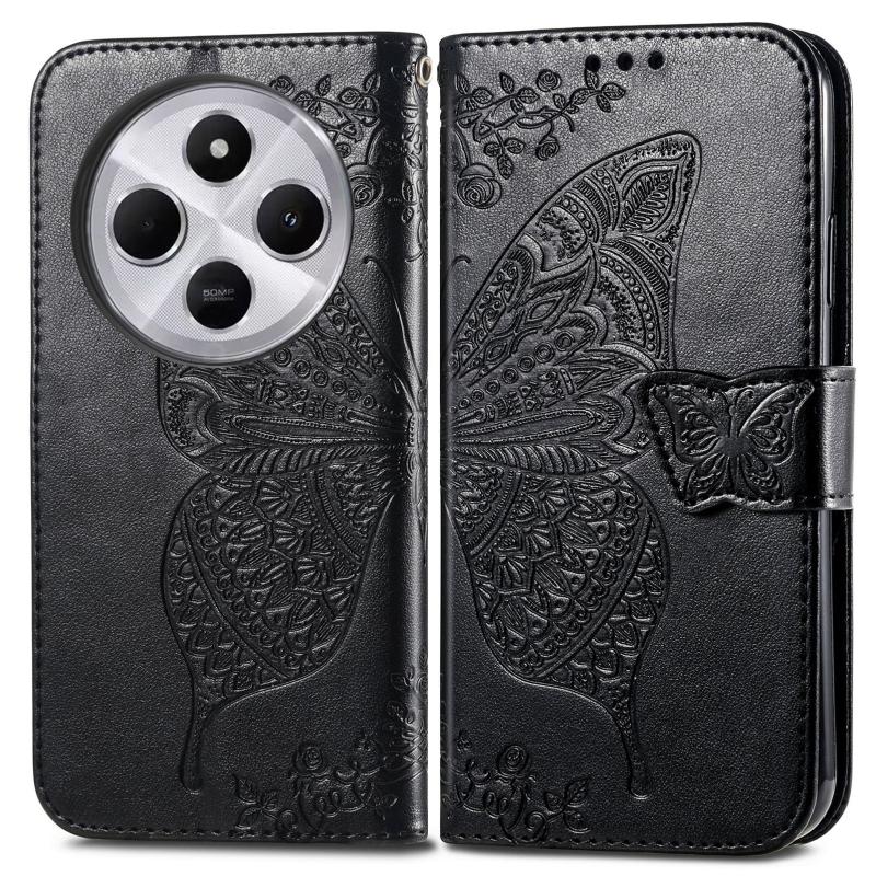For Xiaomi Redmi 14C Butterfly Love Flower Embossed Leather Phone Case(Black)