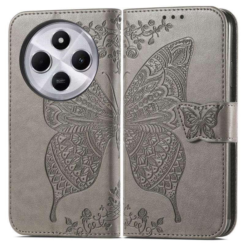 For Xiaomi Redmi 14C Butterfly Love Flower Embossed Leather Phone Case(Grey)