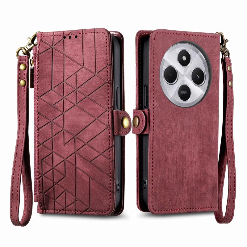 For Xiaomi Redmi 14C Geometric Zipper Wallet Side Buckle Leather Phone Case(Red)
