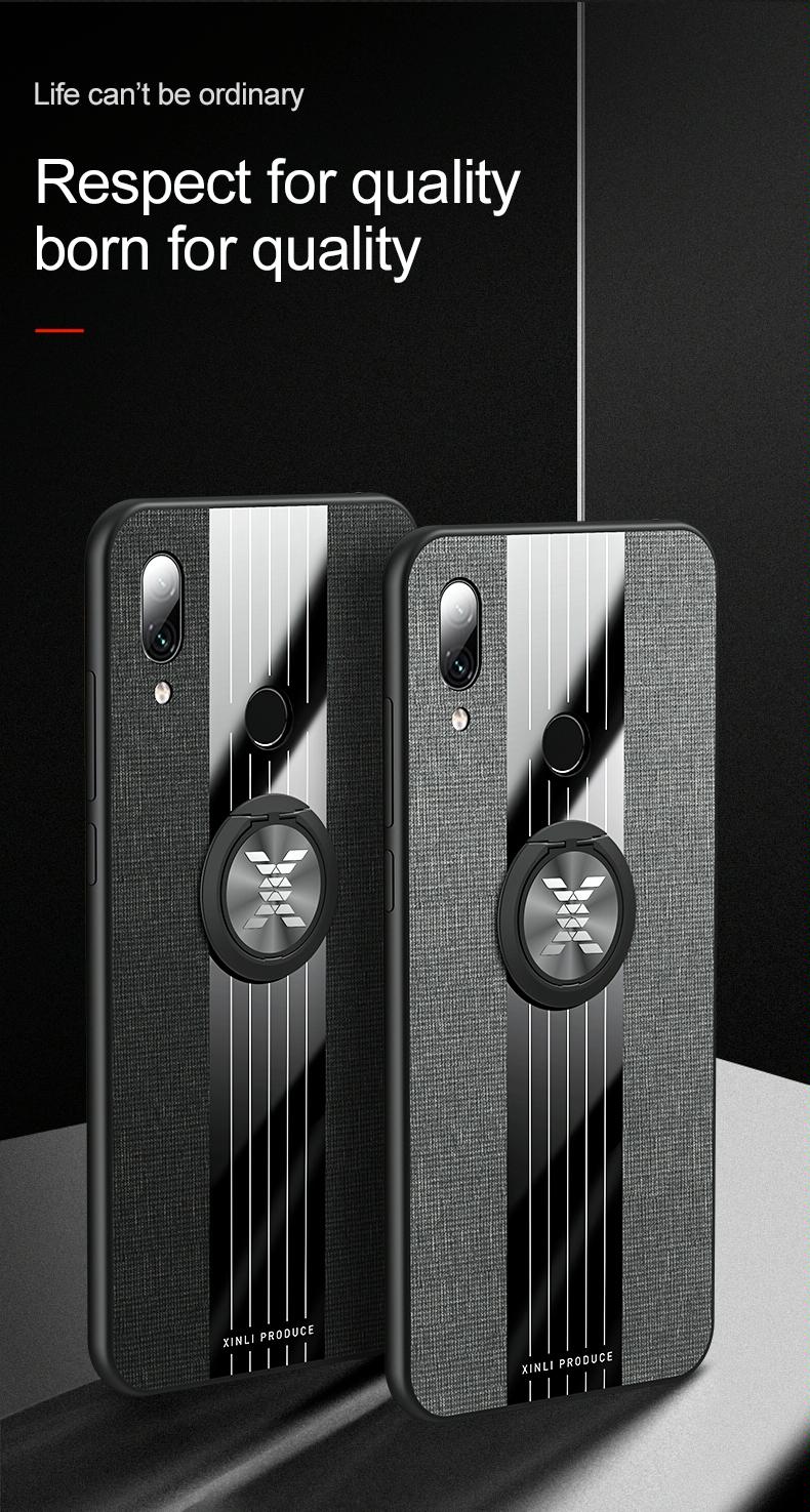 For Xiaomi Redmi 7 XINLI Stitching Cloth Texture Shockproof TPU Protective Case with Ring Holder(Black) (XINLI)