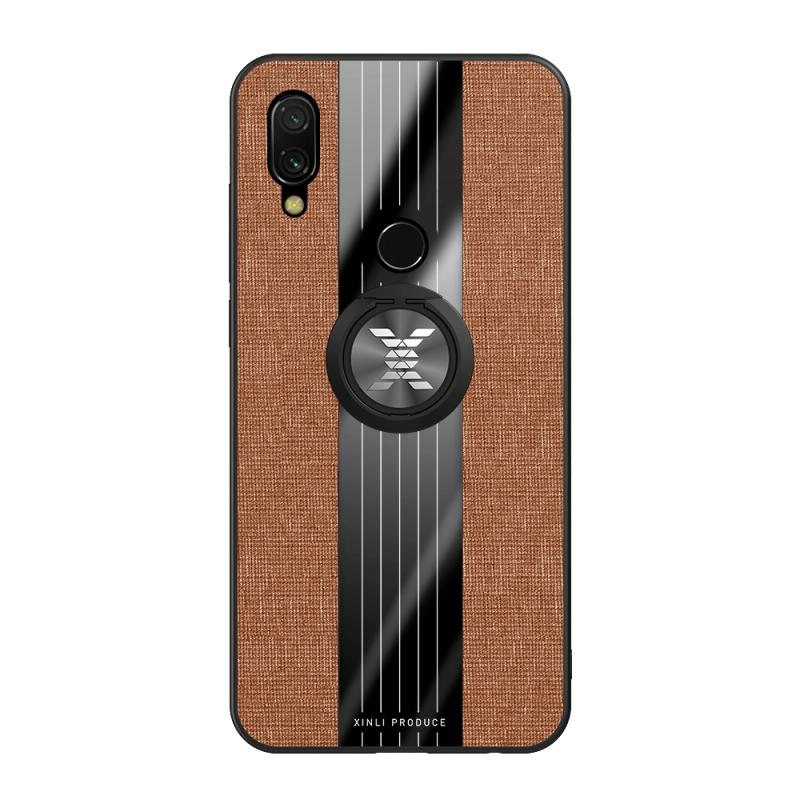 For Xiaomi Redmi 7 XINLI Stitching Cloth Texture Shockproof TPU Protective Case with Ring Holder(Brown) (XINLI)
