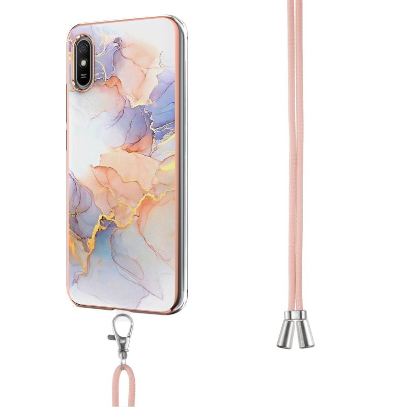 For Xiaomi Redmi 9A Electroplating Pattern IMD TPU Shockproof Case with Neck Lanyard(Milky Way White Marble)