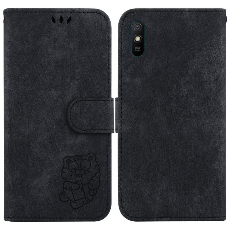 For Xiaomi Redmi 9A Little Tiger Embossed Leather Phone Case(Black)