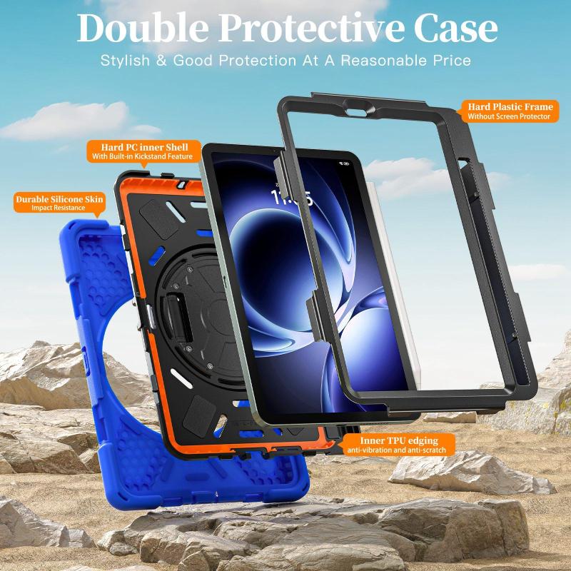 For Xiaomi Redmi K Pad 8.8 Rotatable Holder Silicone Hybrid PC Tablet Case with Shoulder Strap(Blue)