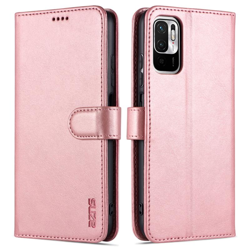 For Xiaomi Redmi Note 10 5G AZNS Skin Feel Calf Texture Horizontal Flip Leather Case with Card Slots & Holder & Wallet(Rose Gold) (AZNS)
