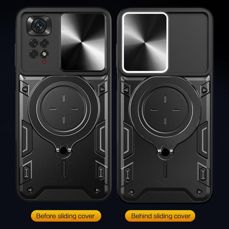 For Xiaomi Redmi Note 11 4G CD Texture Sliding Camshield Magnetic Holder Phone Case(Purple)