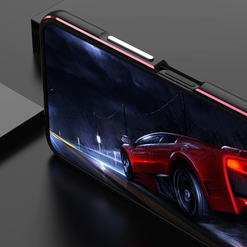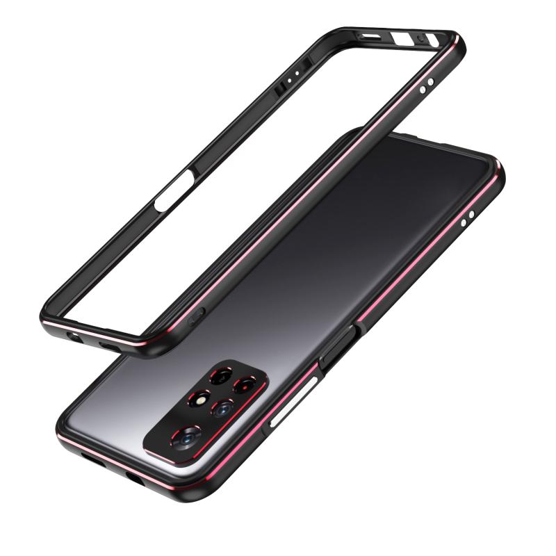 For Xiaomi Redmi Note 11 Aurora Series Lens Protector + Metal Frame Phone Case(Black Red)