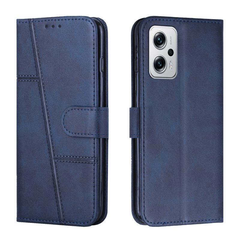 For Xiaomi Redmi Note 11T Pro / Pro+ 5G Stitching Calf Texture Buckle Leather Phone Case(Blue)