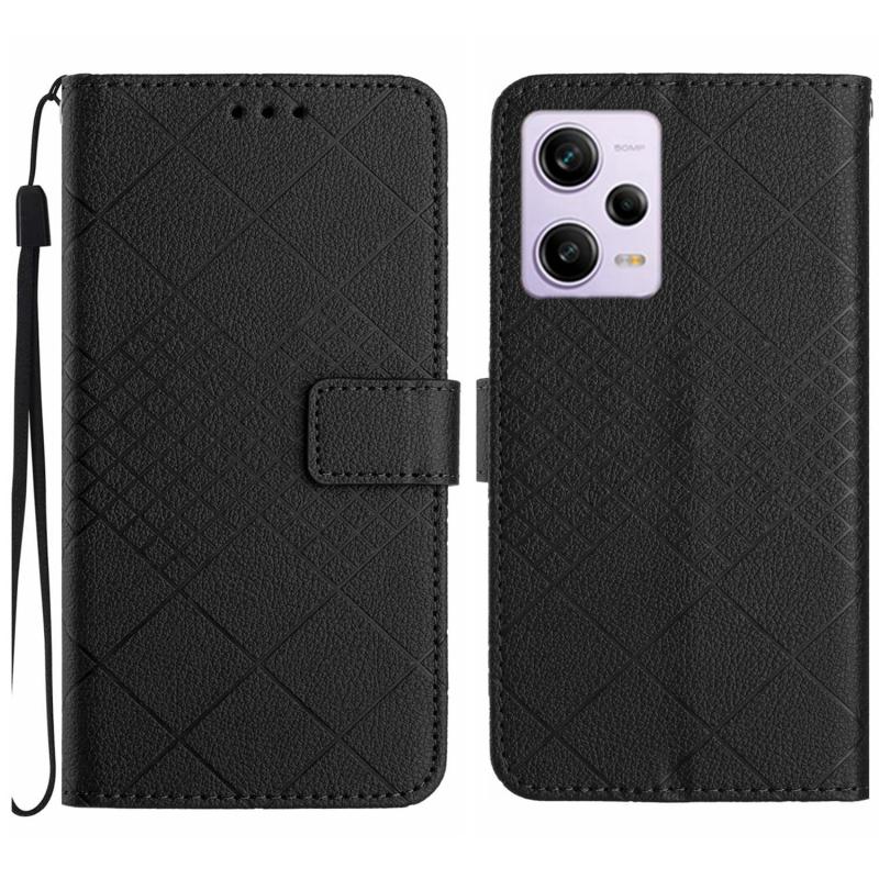 For Xiaomi Redmi Note 12 Pro India Rhombic Grid Texture Leather Phone Case(Black)