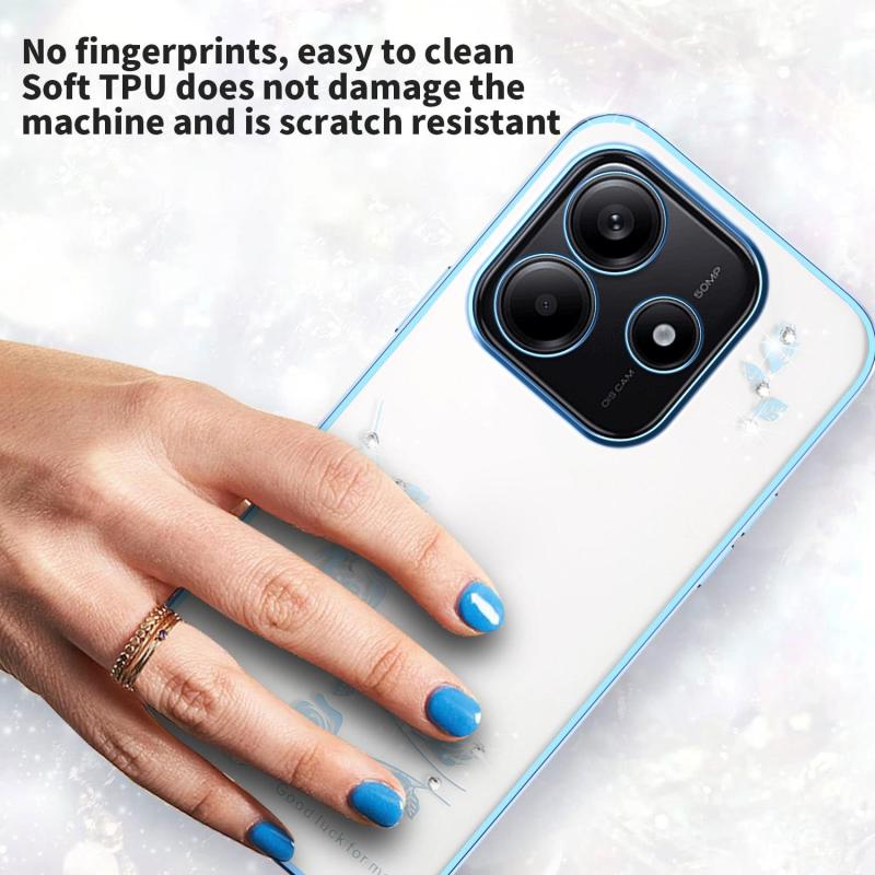 For Xiaomi Redmi Note 14 5G Bling Diamond Flower All-inclusive Phone Case(Blue)