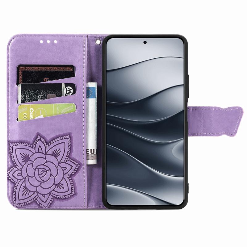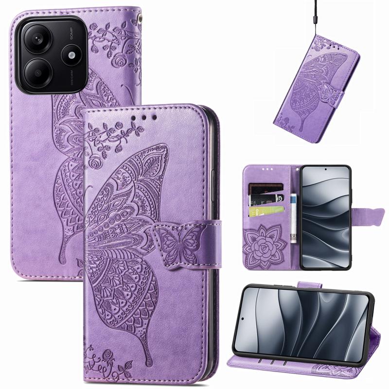 For Xiaomi Redmi Note 14 5G Butterfly Love Flower Embossed Leather Phone Case(Lavender)