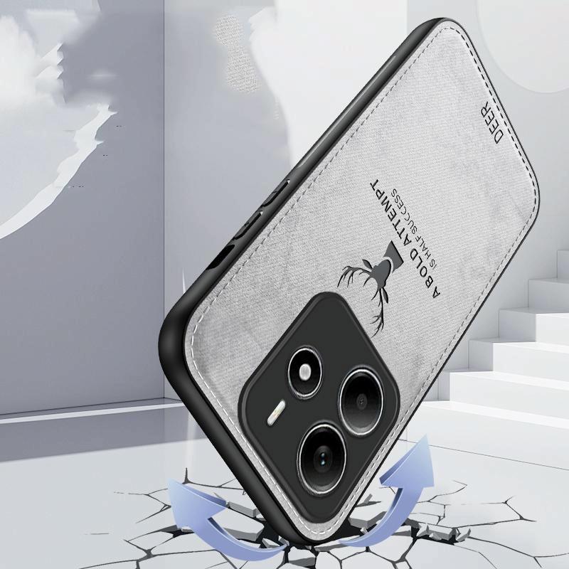 For Xiaomi Redmi Note 14 5G Global Deer Head Cloth Skin All-inclusive Phone Case(White)