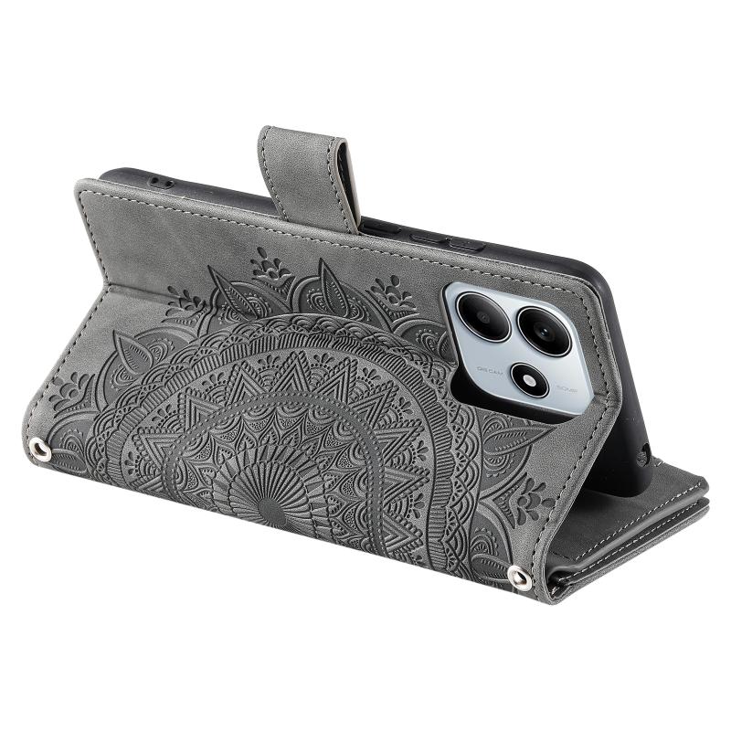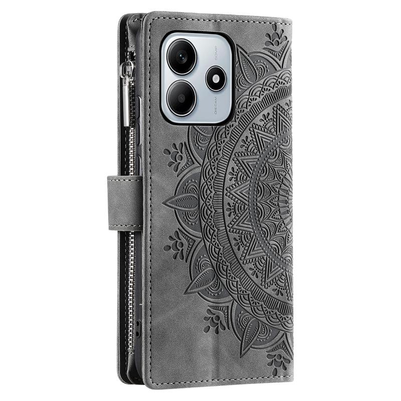For Xiaomi Redmi Note 14 5G Multi-Card Totem Zipper Leather Phone Case(Grey)