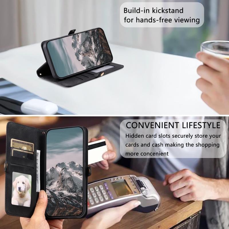 2. Practical Card Holder Function: Includes card slots and a cash compartment for storing your credit cards, cash, or small notes.