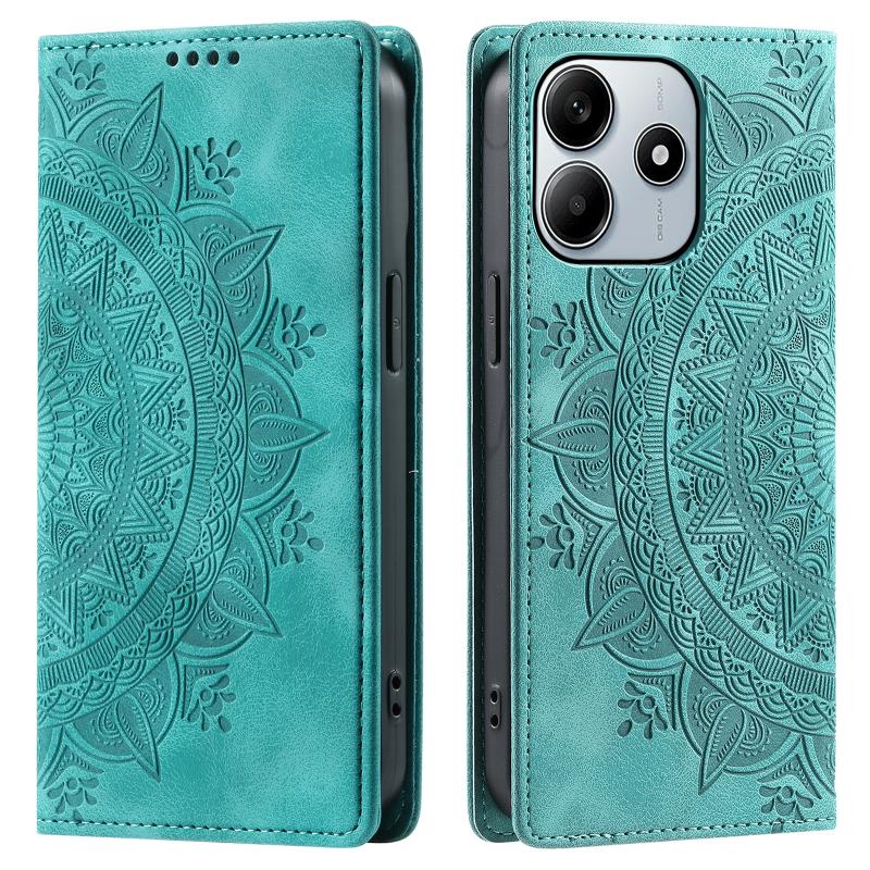 For Xiaomi Redmi Note 14 5G Totem Embossed Magnetic Leather Phone Case(Green)