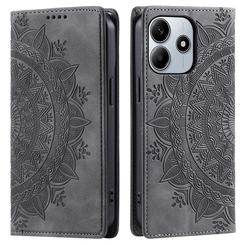 For Xiaomi Redmi Note 14 5G Totem Embossed Magnetic Leather Phone Case(Grey)