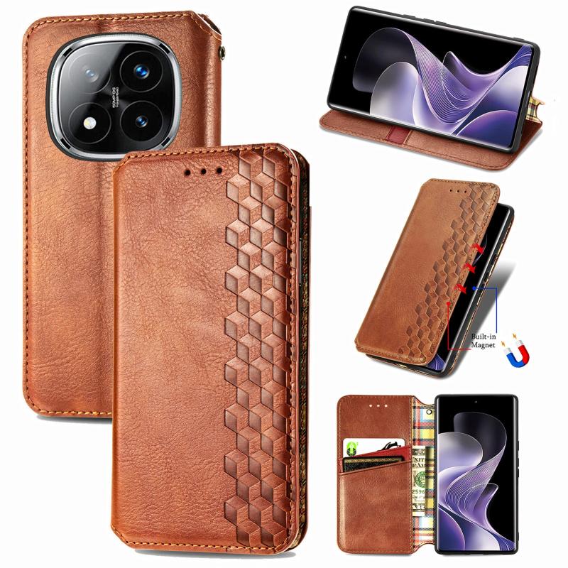 For Xiaomi Redmi Note 14 Pro 5G Cubic Grid Pressed Magnetic Leather Phone Case(Brown)