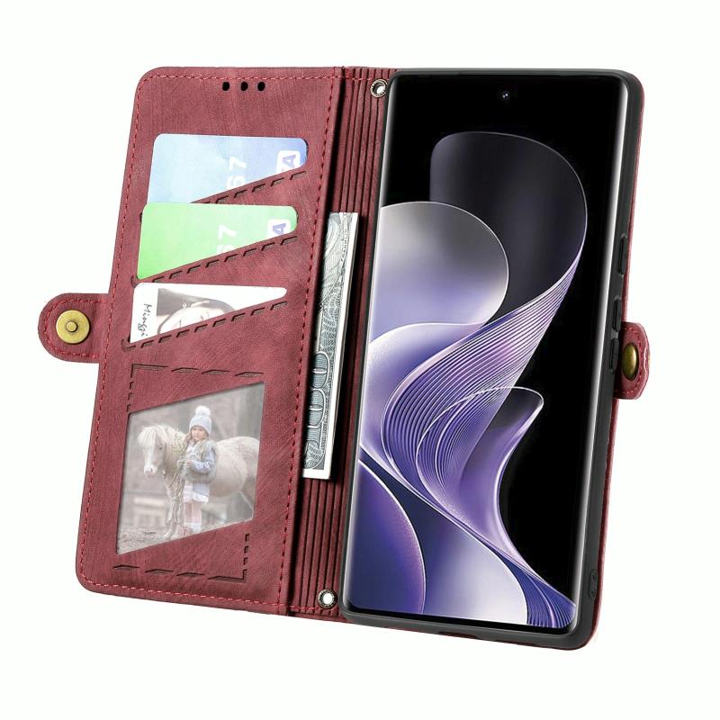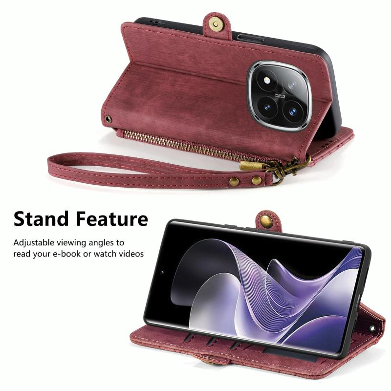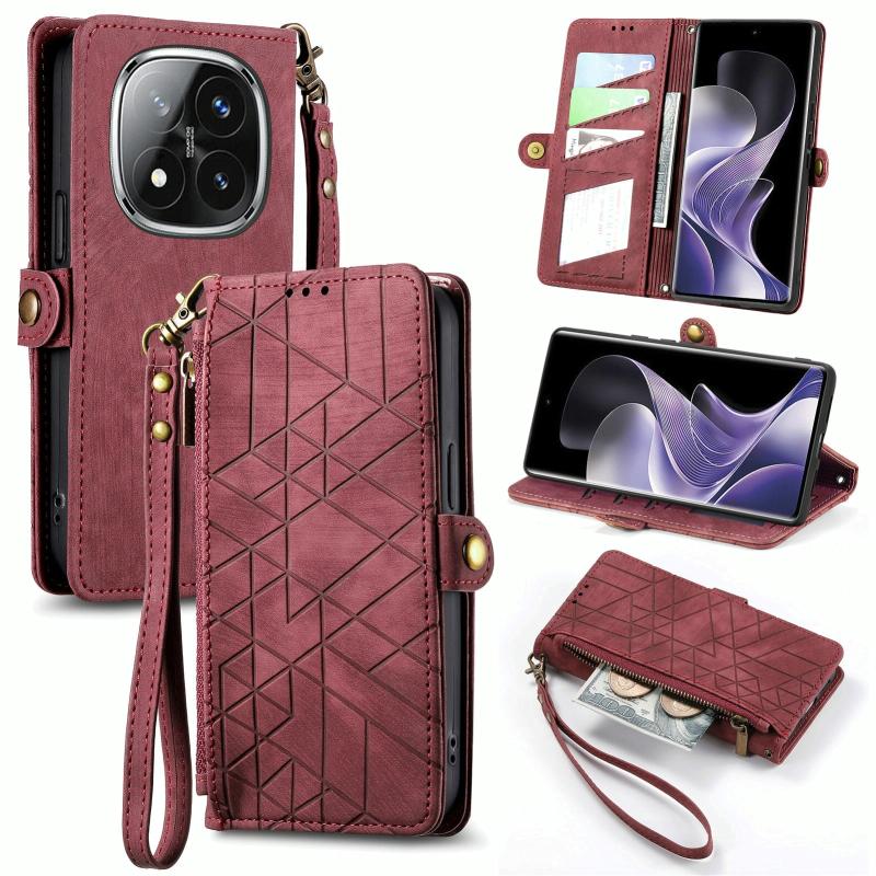 For Xiaomi Redmi Note 14 Pro 5G Geometric Zipper Wallet Side Buckle Leather Phone Case(Red)