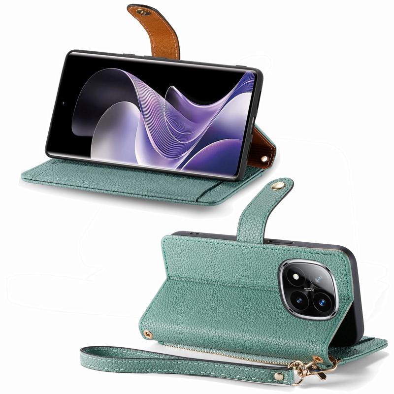 For Xiaomi Redmi Note 14 Pro 5G Love Zipper Lanyard Leather Phone Case(Green)