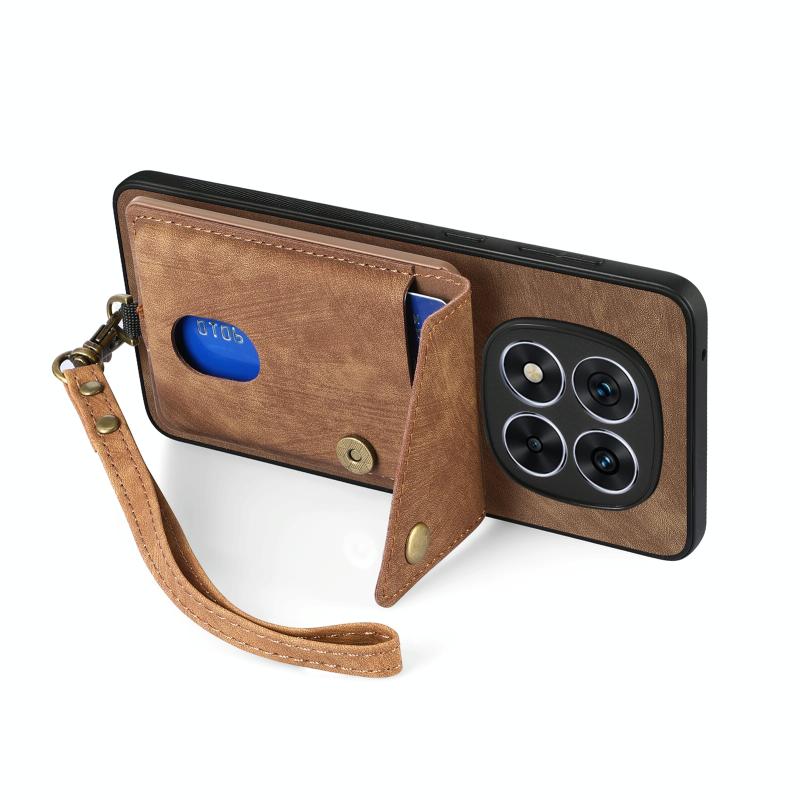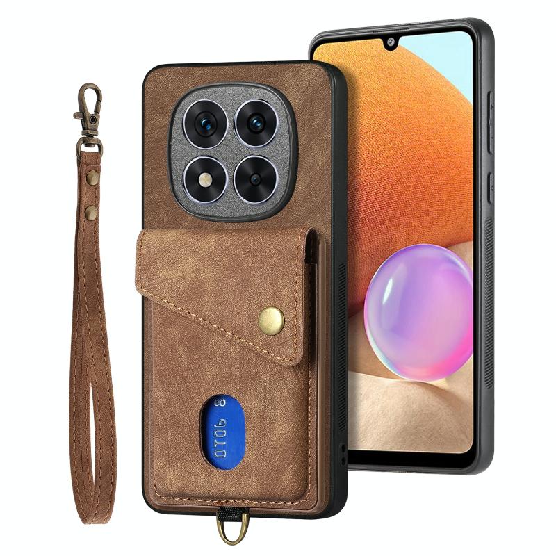 For Xiaomi Redmi Note 14 Pro 5G Retro Card Wallet Fold Leather Phone Case with Strap(Brown)