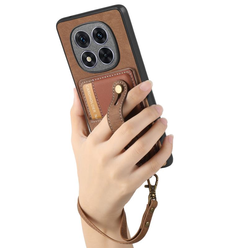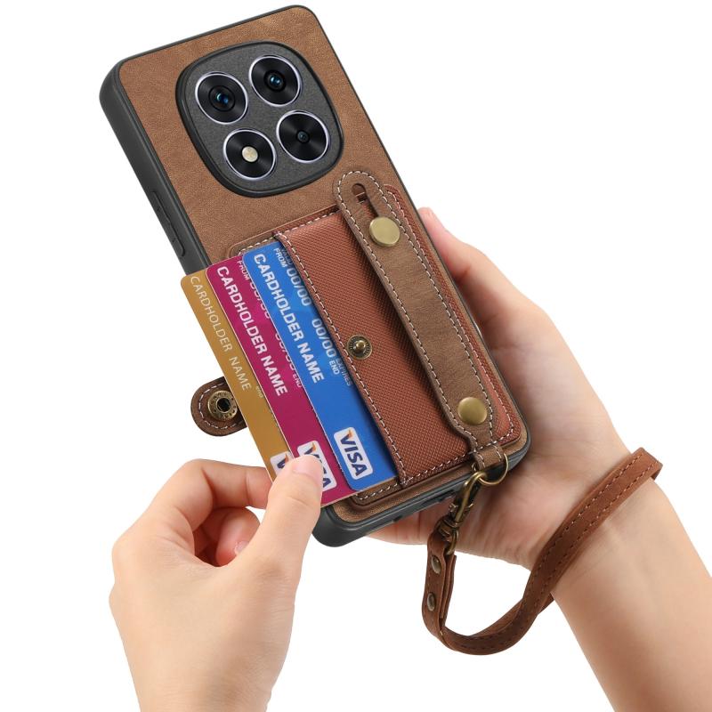 For Xiaomi Redmi Note 14 Pro 5G Retro Cross Wristband Wallet Leather Back Phone Case(Brown)