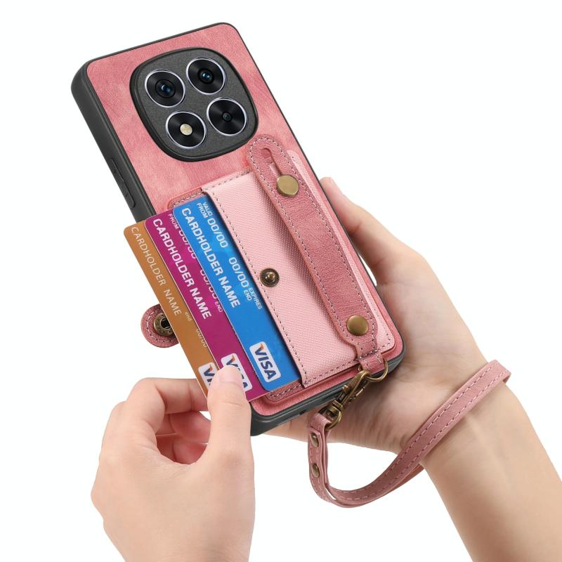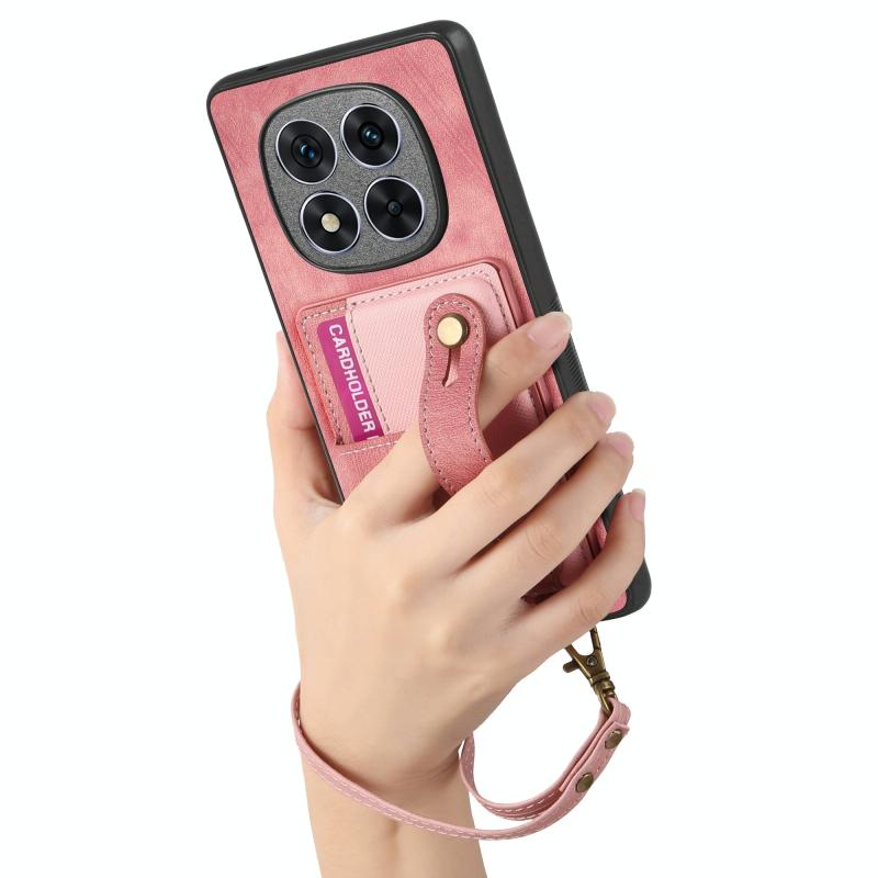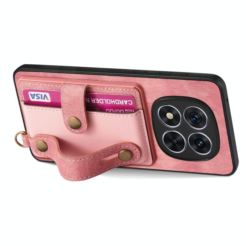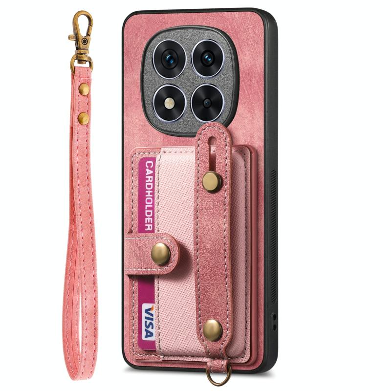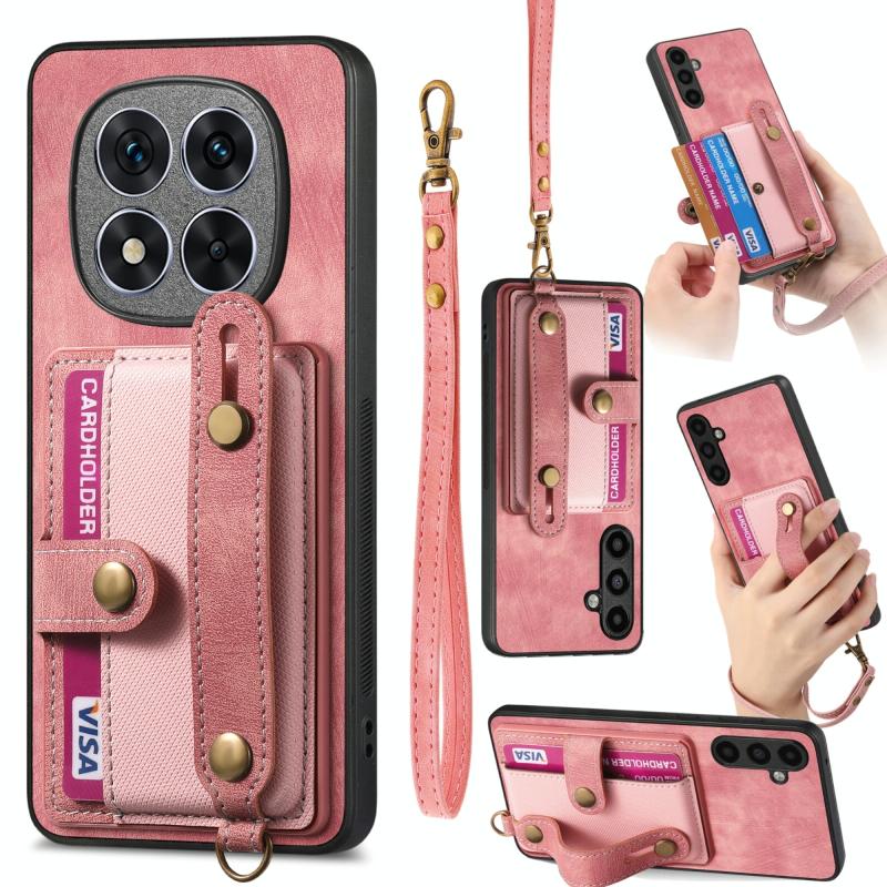 For Xiaomi Redmi Note 14 Pro 5G Retro Cross Wristband Wallet Leather Back Phone Case(Pink)