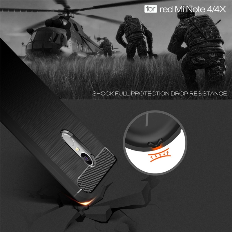 For Xiaomi Redmi Note 4X Brushed Carbon Fiber Texture Shockproof TPU Protective Case (Red)
