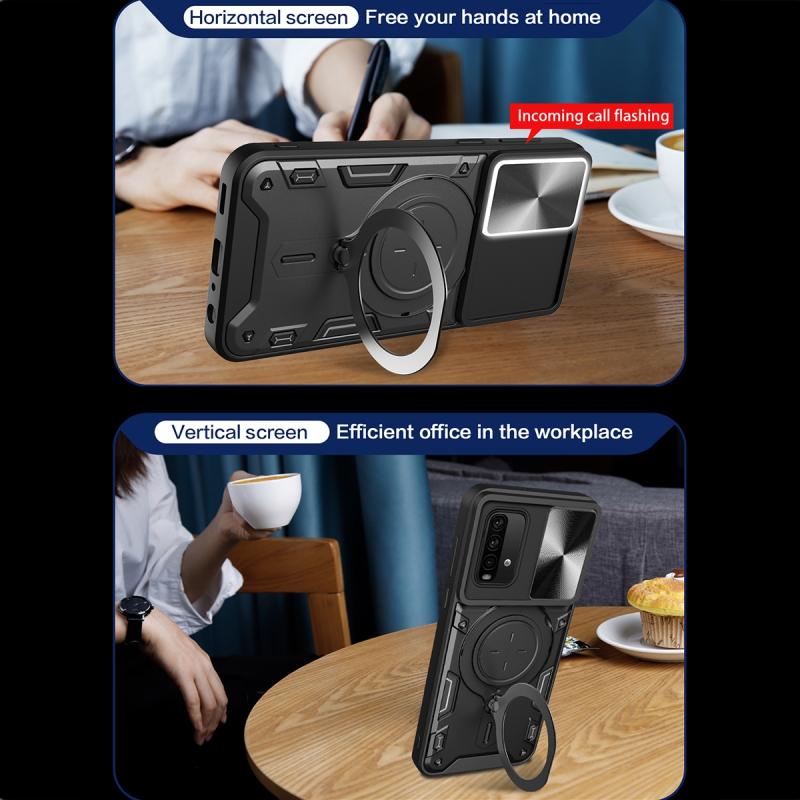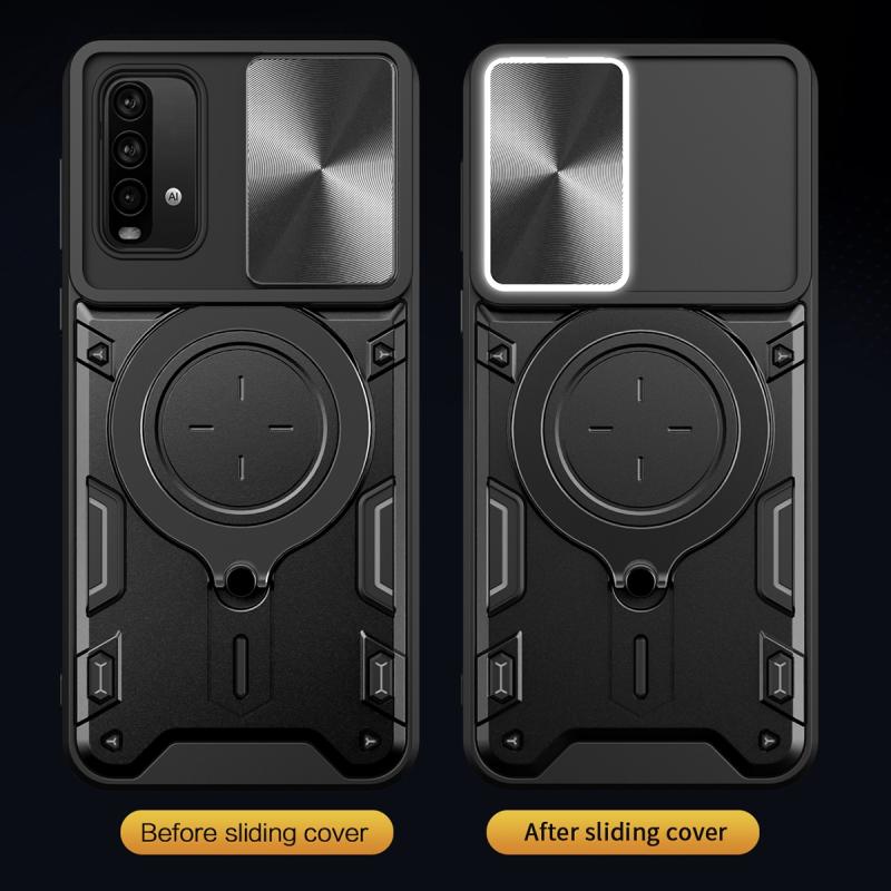 For Xiaomi Redmi Note 9 4G CD Texture Sliding Camshield Magnetic Holder Phone Case(Purple)
