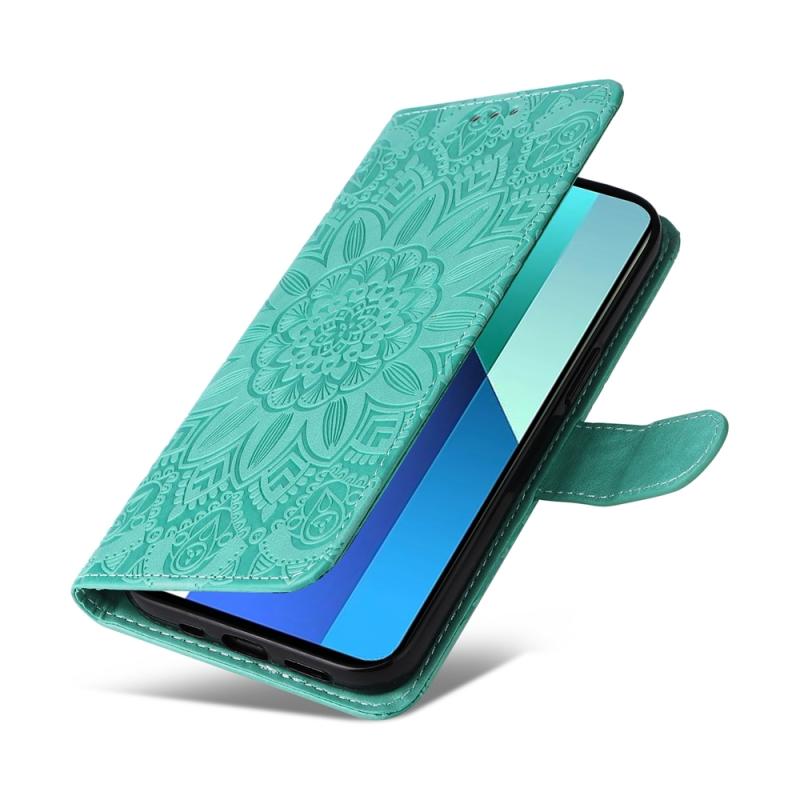 For Xiaomi Redmi Note13 4G Embossed Sunflower Leather Phone Case(Green)