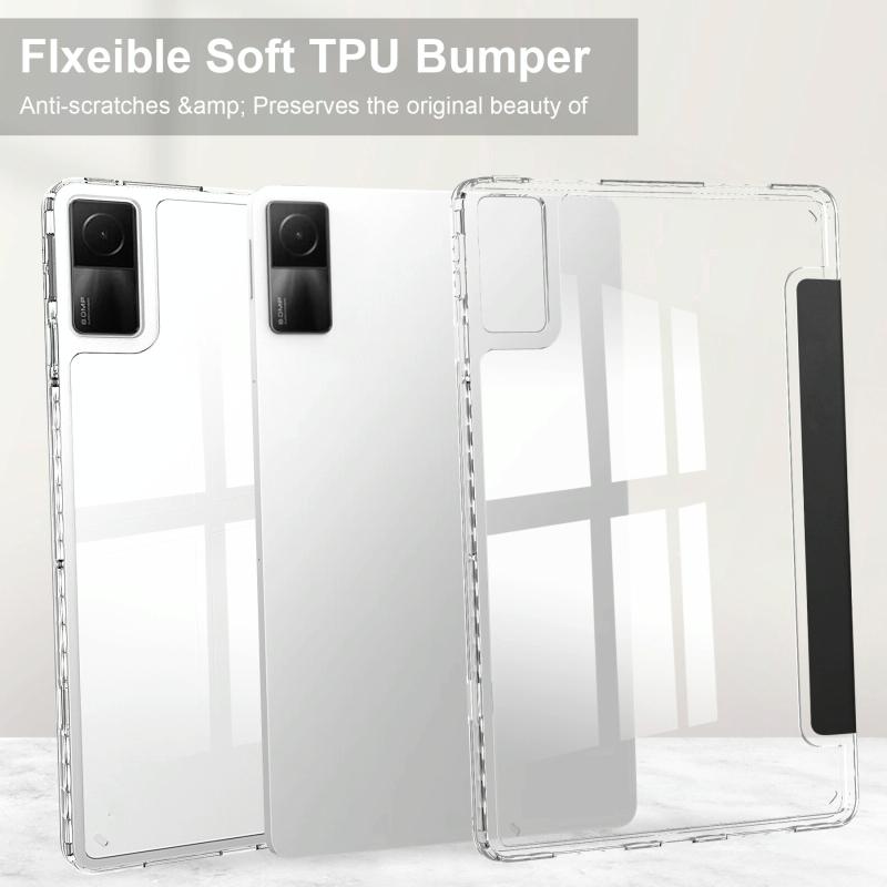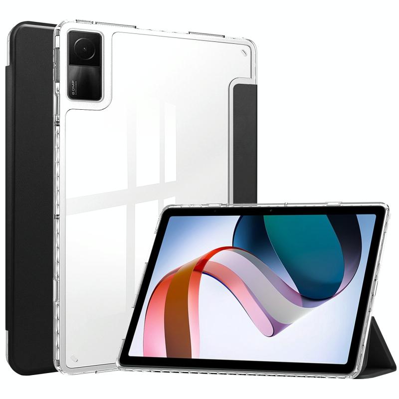 For Xiaomi Redmi Pad 10.6 3-Fold Clear Back Cover Leather Smart Tablet Case(Black)