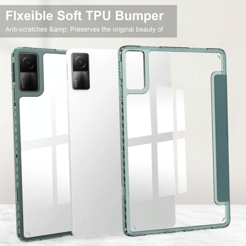 For Xiaomi Redmi Pad 10.6 3-Fold Clear Back Cover Leather Smart Tablet Case(Dark Green)