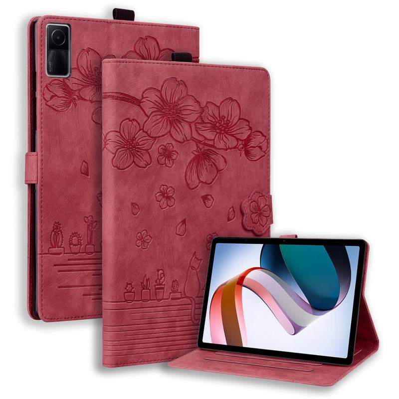 For Xiaomi Redmi Pad 10.61 2022 Cartoon Sakura Cat Embossed Leather Tablet Case(Red)