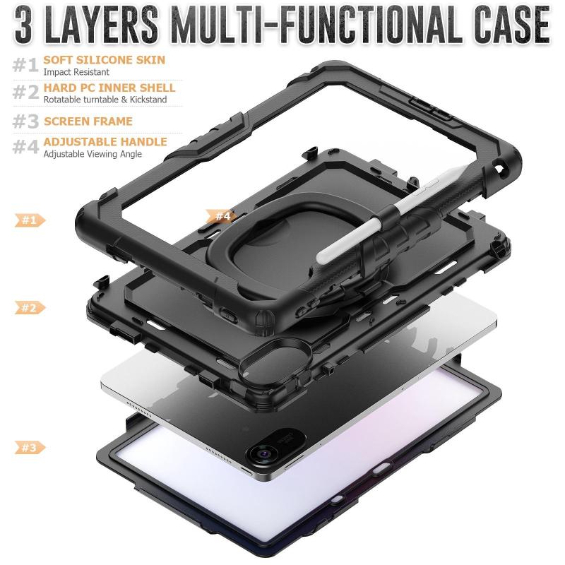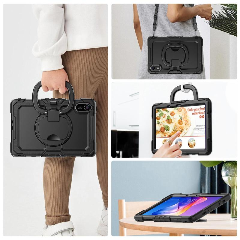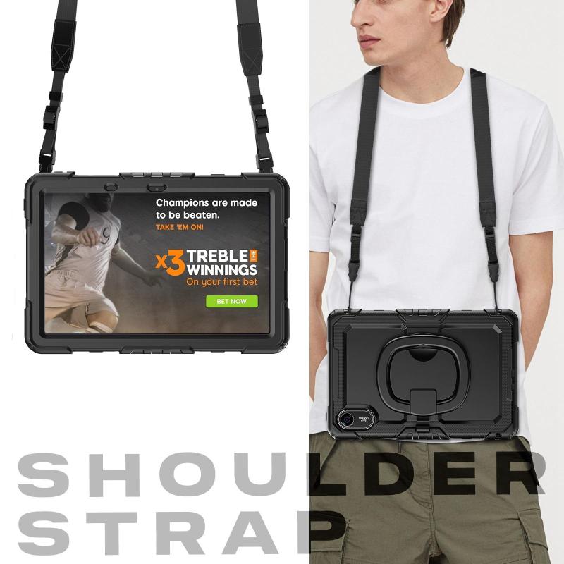 6. Shoulder Strap: Shoulder grip can be slanted and release your hands completely. This function is perfect for traveling, restaurant ordering, home product introduction, engineer outdoor operation, teacher, etc. Also, the strap allows you to hang up your tablet behind car seat for entertainment for kids.