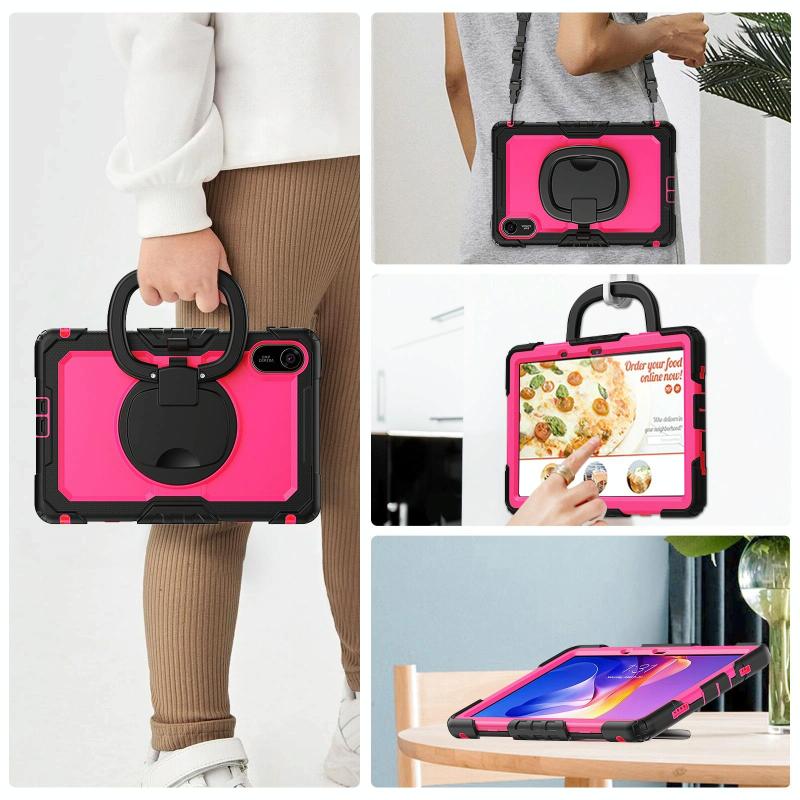 6. Shoulder Strap: Shoulder grip can be slanted and release your hands completely. This function is perfect for traveling, restaurant ordering, home product introduction, engineer outdoor operation, teacher, etc. Also, the strap allows you to hang up your tablet behind car seat for entertainment for kids.