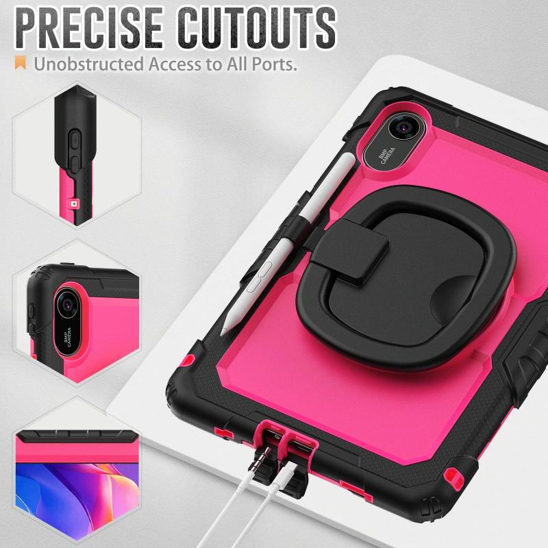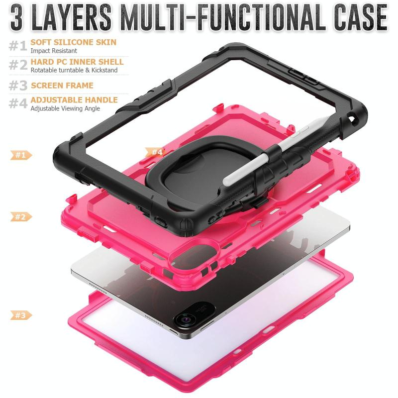 For Xiaomi Redmi Pad 2 D Type Silicone Hybrid PC Tablet Case with Handle Holder(Rose Red PC)