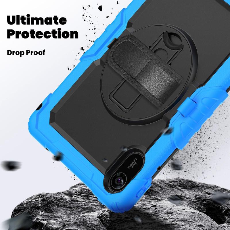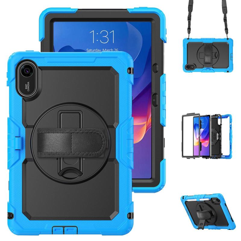For Xiaomi Redmi Pad 2 Turntable Holder Silicone Hybrid PC Tablet Case with Shoulder Strap(Light Blue+Black)