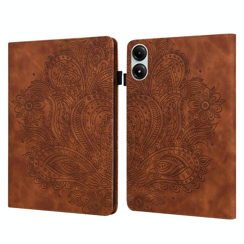 For Xiaomi Redmi Pad Pro 12.1 Peacock Embossed Pattern Leather Tablet Case(Brown)