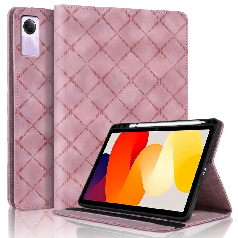 For Xiaomi Redmi Pad SE 11 2023 Rhombus Embossed Leather Smart Tablet Case(Pink)