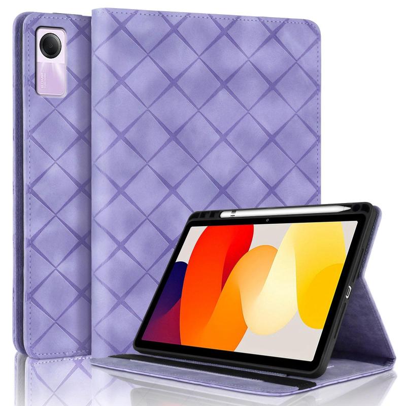 For Xiaomi Redmi Pad SE 11 2023 Rhombus Embossed Leather Smart Tablet Case(Purple)