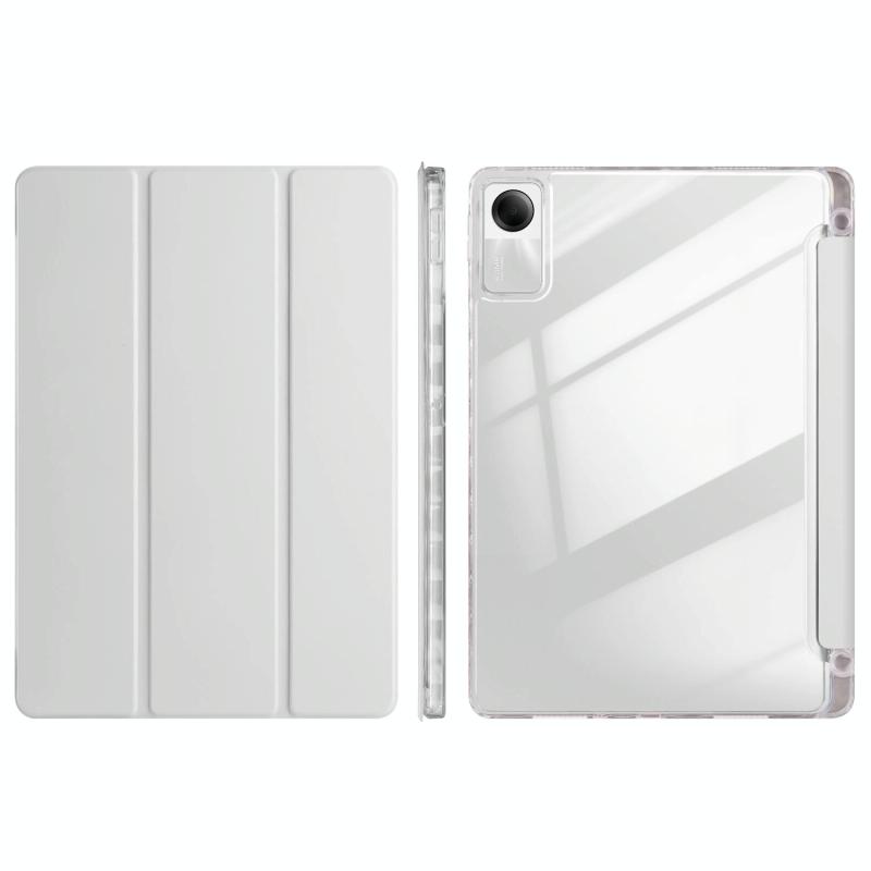 For Xiaomi Redmi Pad SE 11 3-Fold Clear Acrylic Leather Tablet Case(Gray)
