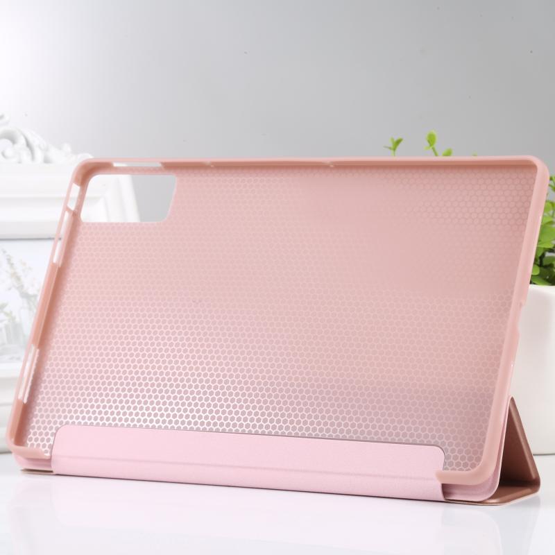 For Xiaomi Redmi Pad SE 2023 Three-fold Holder Flip Tablet Leather Case(Rose Gold)