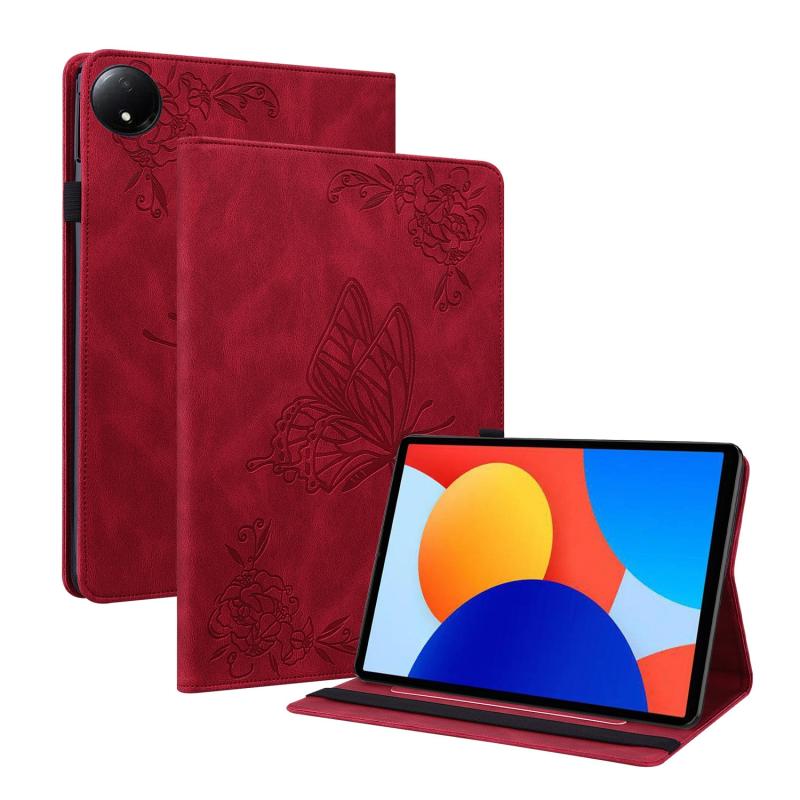 For Xiaomi Redmi Pad SE 8.7 Butterfly Flower Embossed Leather Tablet Case(Red)