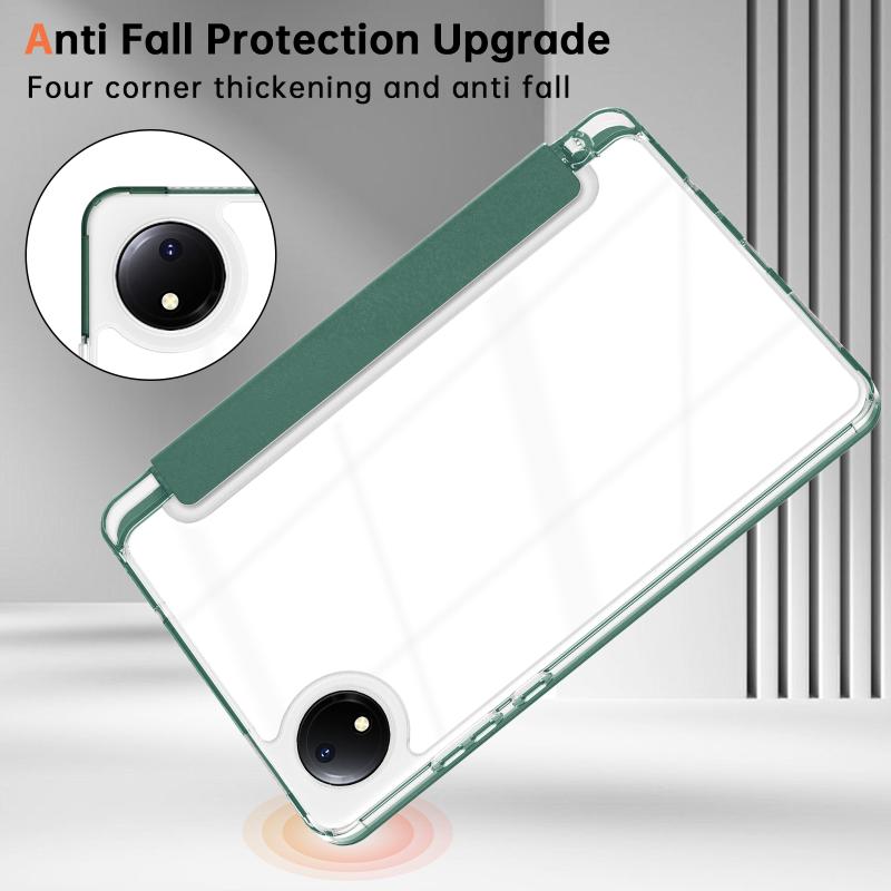 For Xiaomi Redmi Pad SE 8.7 Clear Acrylic Deformation Leather Tablet Case(Dark Green)