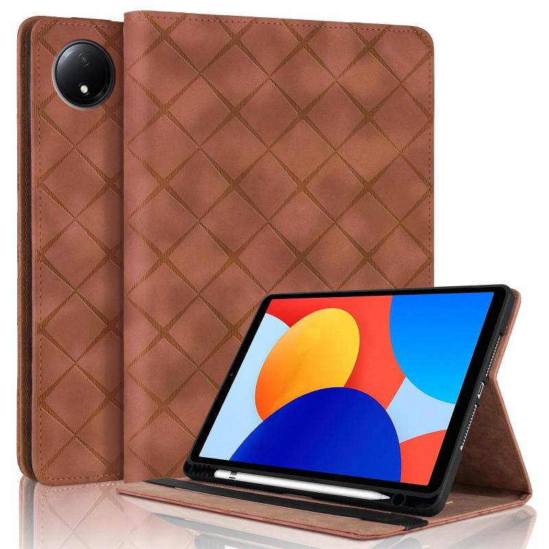 For Xiaomi Redmi Pad SE 8.7 Rhombus Embossed Leather Smart Tablet Case(Brown)