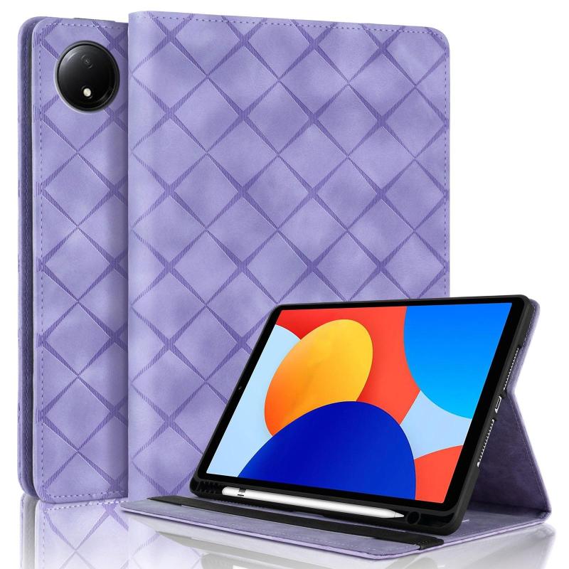 For Xiaomi Redmi Pad SE 8.7 Rhombus Embossed Leather Smart Tablet Case(Purple)