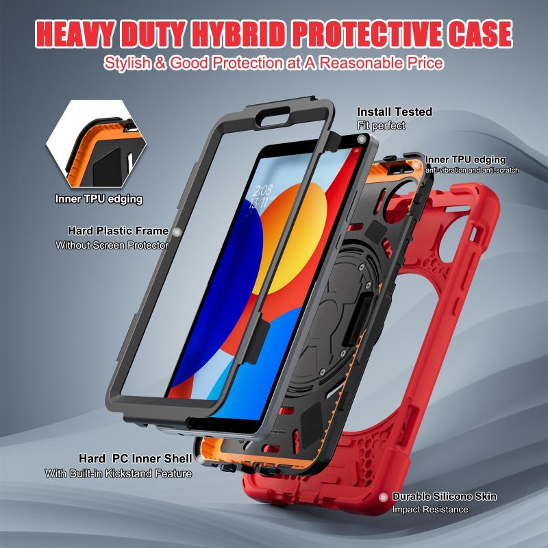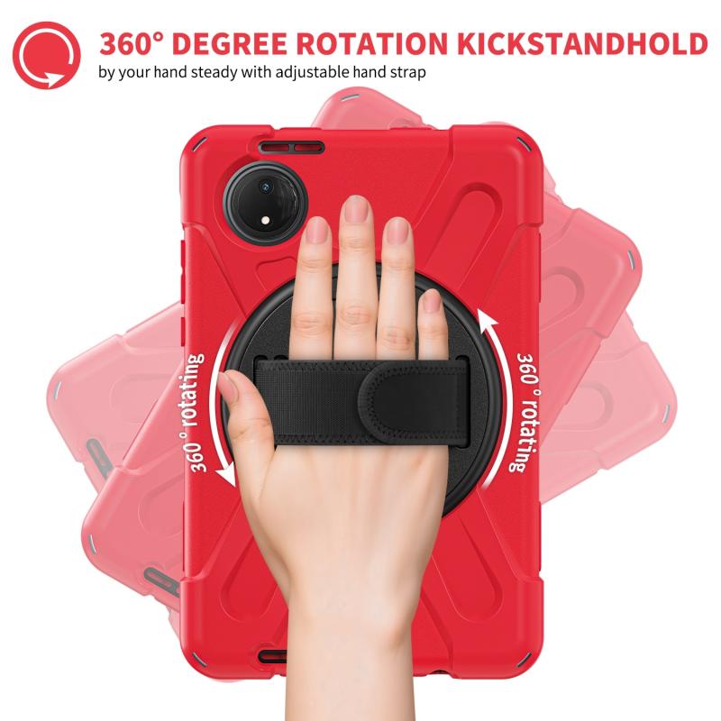 For Xiaomi Redmi Pad SE 8.7 Rotatable Holder Silicone Hybrid PC Tablet Case with Shoulder Strap(Red)